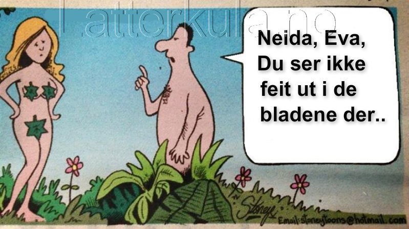 Adam og Eva med “klesproblemer” 😉 Share Facebook Twitter Pinterest WhatsApp - Advertisement - - Advertisement - Kommentarer - Advertisement - Share Facebook Twitter Pinterest WhatsApp Siste nytt Videoer Se verdens FARLIGSTE og mest SINNSYKE vannsklier! -Annonse - Bildeserier Noe MÅ gjøres med det SKJULTE misbruket – Få FYLLA ut på gaten! Bildeserier Hadde du tenkt deg UT AV SKAPET i helgen? Videoer BRYLLUPS-bildene du aldri skulle trodd eksisterte! -Annonse - Related news Bilder Verdens sykeste og ekleste selfies !!! Bilder Angret på navnetatoveringen – Dette er bare helt sykt! Bilder 29 svært uheldige og PINLIGE situasjoner for den kongelige garde! Bilder Helt vanvittig og ekstremt rotete rom - Advertisement - Kommentarer
