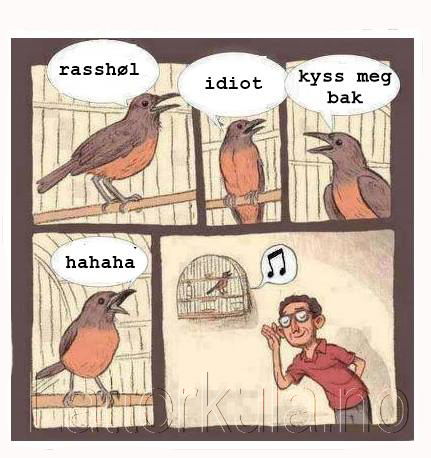 Hva sier egentlig fuglen? Share Facebook Twitter Pinterest WhatsApp - Advertisement - - Advertisement - Kommentarer - Advertisement - Share Facebook Twitter Pinterest WhatsApp Siste nytt Videoer Se verdens FARLIGSTE og mest SINNSYKE vannsklier! -Annonse - Bildeserier Noe MÅ gjøres med det SKJULTE misbruket – Få FYLLA ut på gaten! Bildeserier Hadde du tenkt deg UT AV SKAPET i helgen? Videoer BRYLLUPS-bildene du aldri skulle trodd eksisterte! -Annonse - Related news Bilder Verdens sykeste og ekleste selfies !!! Bilder Angret på navnetatoveringen – Dette er bare helt sykt! Bilder 29 svært uheldige og PINLIGE situasjoner for den kongelige garde! Bilder Helt vanvittig og ekstremt rotete rom - Advertisement - Kommentarer