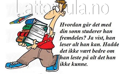 Min sønn leser alt han kan.. Share Facebook Twitter Pinterest WhatsApp - Advertisement - - Advertisement - Kommentarer - Advertisement - Share Facebook Twitter Pinterest WhatsApp Siste nytt Videoer Se verdens FARLIGSTE og mest SINNSYKE vannsklier! -Annonse - Bildeserier Noe MÅ gjøres med det SKJULTE misbruket – Få FYLLA ut på gaten! Bildeserier Hadde du tenkt deg UT AV SKAPET i helgen? Videoer BRYLLUPS-bildene du aldri skulle trodd eksisterte! -Annonse - Related news Bilder Verdens sykeste og ekleste selfies !!! Bilder Angret på navnetatoveringen – Dette er bare helt sykt! Bilder 29 svært uheldige og PINLIGE situasjoner for den kongelige garde! Bilder Helt vanvittig og ekstremt rotete rom - Advertisement - Kommentarer