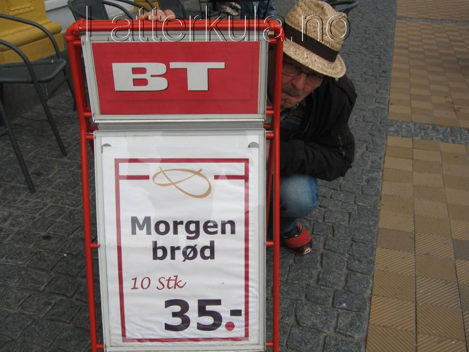 Morsomt skilt, morgenbrød…